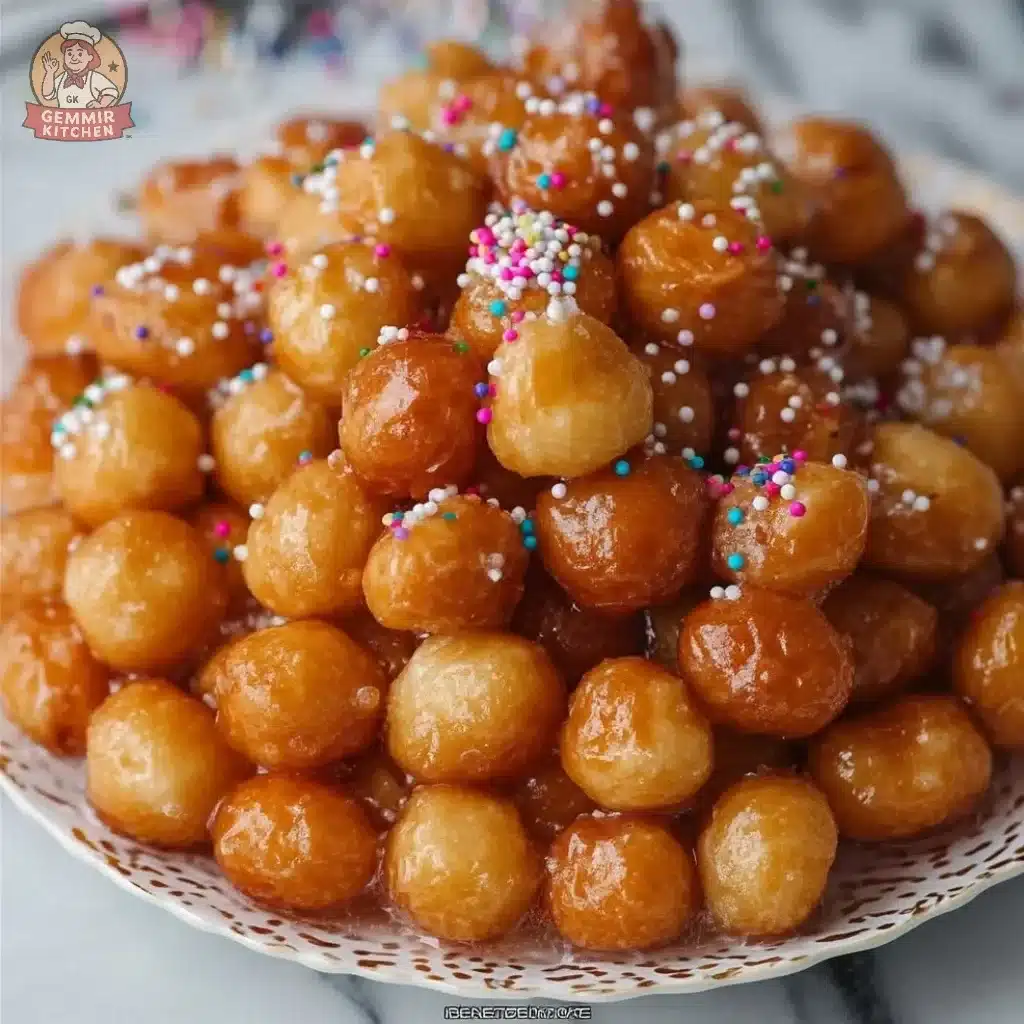 Classic Struffoli (Italian Honey Balls) bring a kind of festive charm that’s both rustic and bright. These little fried dough balls soak up honey and citrus, and the result is a cluster of bite-sized pieces that look like edible confetti. What makes Classic Struffoli (Italian Honey Balls) special is how simple ingredients transform into a centerpiece flour, eggs, butter, and honey become something celebratory without fuss. I love that these are easy to share: arrange them in a mound on a platter and everyone can pick a honeyed bite. The texture plays a big role too. The contrast between a crisp fry on the outside and a tender interior allows the honey to cling and coat each small piece, which is exactly what you want when you make Classic Struffoli (Italian Honey Balls).