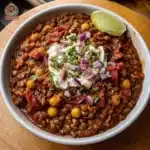 This recipe wins hearts because it balances simplicity and soul. The Hearty Vegetarian Lentil Chili gives you that deep, slow-cooked flavor without the long simmer times or dozens of ingredients. Lentils act like a cozy backbone, giving the chili heart and body while keeping it light on meat perfect for times when you want a satisfying, pork-free dinner that still feels substantial. Black beans add a creamy contrast, while a can of diced tomatoes brings brightness. The spices are modest: chili powder and cumin, warmed in the pan to wake them up, are all this recipe needs to feel complete.