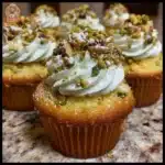 - Add toppings: Scatter chopped pistachios and crumble on each frosted cupcake.