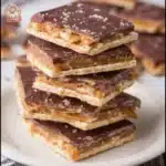 To keep Saltine Cracker Candy crisp, store it in an airtight container at room temperature. Humidity is the enemy of brittle candy, so don’t seal it in a damp place or leave it uncovered on the counter. If your kitchen runs warm, place the container in a cool spot or refrigerate it briefly; the chocolate may firm up faster but will remain crunchy when you bring it back to room temperature. Properly stored, Saltine Cracker Candy will stay fresh for several days usually up to a week though it tastes best within the first two to three days when the chocolate still has that glossy snap.