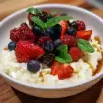 This is one of those dishes that feels like family — it’s forgiving, takes a handful of pantry staples, and stretches to feed a crowd without fuss. It’s perfect after a casual dinner or when relatives drop by; everyone can help themselves to a bowl, and it travels well from counter to table to picnic basket. It sits happily beside a simple salad or a bowl of soup, and the honeyed berries on top make it look, and taste, special enough for a holiday without a lot of fuss.
